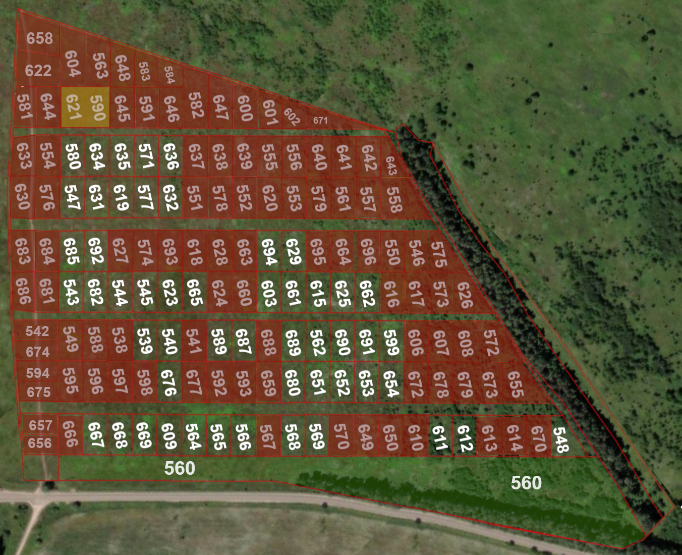Цвет проданного участка